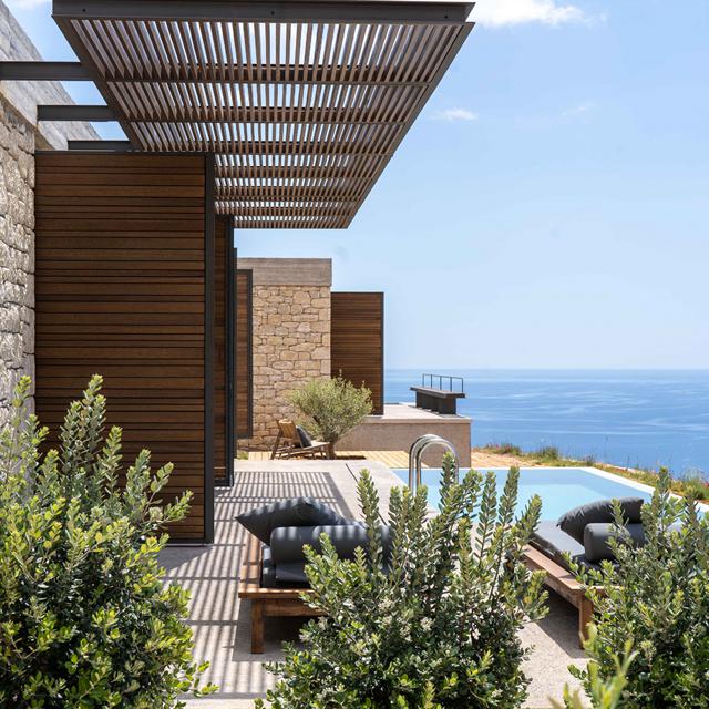 De luxe villa’s lijken op te gaan in het landschap van Peloponnesos, doordat ze zijn gebouwd met stenen uit de omgeving. De villa’s hebben een trendy inrichting met veel privacy en zijn voorzien van een eigen zwembad. Zin om meer van de omgeving te zien? Rijd dan naar het pittoreske dorpje Kardamili of de populaire badplaats Agios Nikolaos.