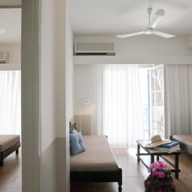 Hotel Kamari Beach heeft een geweldige ligging: direct aan de gezellige boulevard en aan het strand. Vanaf het hotel, sta je met een paar stappen op het unieke zwarte zandstrand van Kamari. Daarnaast is er een groot zwembad, dat ook uitkijkt op de Egeïsche zee. Het magnifieke buitenbadgedeelte is een heerlijke plek om te ontspannen. Neem een verfrissende duik in het zwembad of ontspan in een ligstoel en geniet van het uitzicht. Voor een drankje of een lekkere snack kun je terecht bij de poolbar.